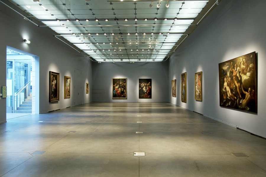 The collection of Old Masters – unique for the greater Luxembourg region – begins with some important Italian paintings of the 13th to the 15th century (including Giacomo del Pisano and Don Silvestro dei Gherarducci). In their new colour-coordinated décor, our redesigned exhibition rooms present a number of works never shown before. These treasures in clude a magnificent diptych by Albrecht Bouts (1451/55–1549), the famous “Bacchus, Venus and Cupid” by Rosso Fiorentino (1494–1541) and the impressive “Procession with the Holy Sacrament” by Louis Gabriel Eugène Isabey (1803–1886). The collection of modern and contemporary art (including Cézanne, Magritte, Picasso, Alechinsky, Jorn, Knoebel, Zao Wou-Ki) is now being shown in newly renovated premises. It includes Neo-Impressionist paintings (e.g. Guillaumin, Cross, Rysselberghe) as well as works of the Ecole de Paris after 1945 (Estève, Le Moal, Manessier, Bissière, Poliakoff, Lapicque etc.) and paintings by representatives of the Nouvelle Figuration (Adami, Aillaud, Arroyo).